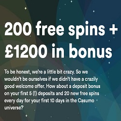 No download is required to play on play on any of the games here at Casumo Casino and this top UK online casino is available on desktop and on mobile. To claim your 200 Free Spins head over to this casino today and register your free account before it’s too late.